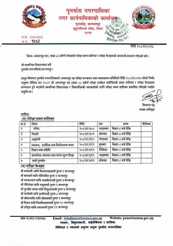 आधारभुत तह (कक्षा ८) उत्तीर्ण परीक्षाको परीक्षा समय तालिका र परीक्षा केन्द्रहरुको नामावली प्रकाशन गरिएको सूचना ।