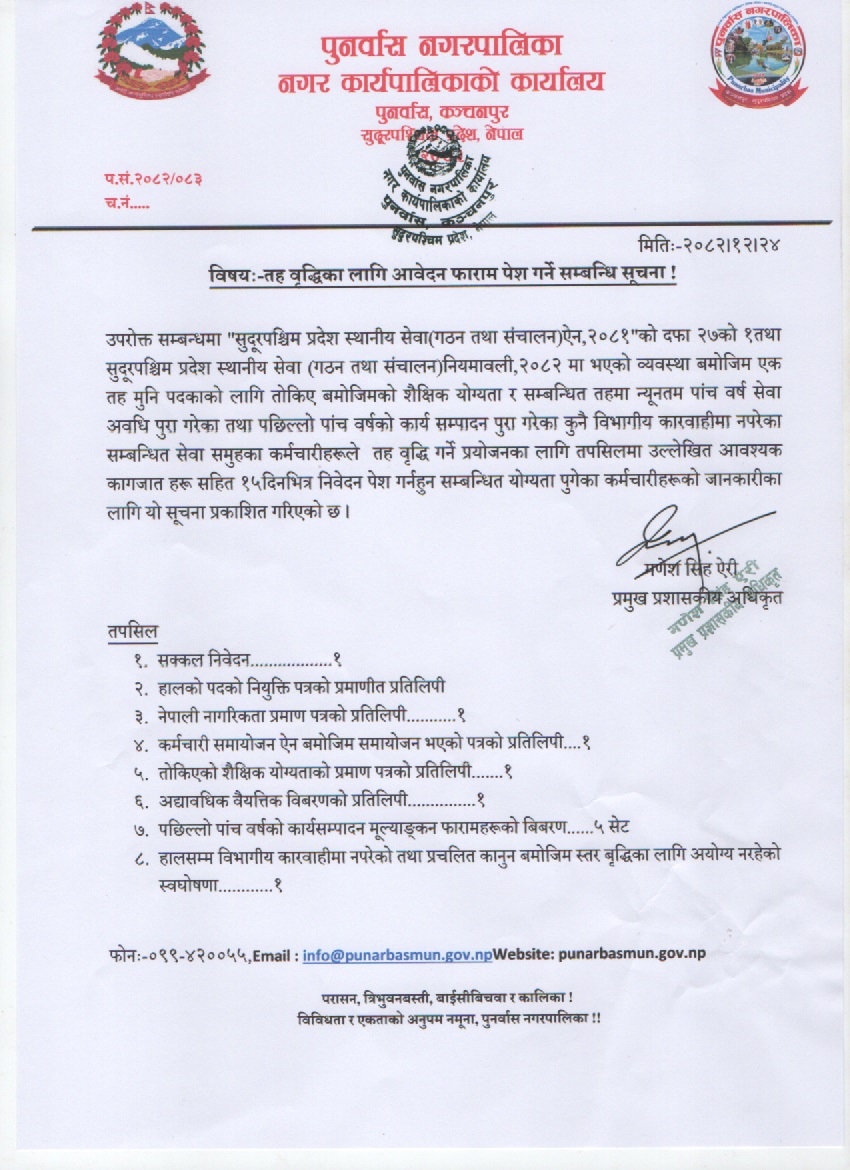 तह बृद्धिका लागी आवेदन फारम पेश गर्ने सम्बन्धी सूचना ।